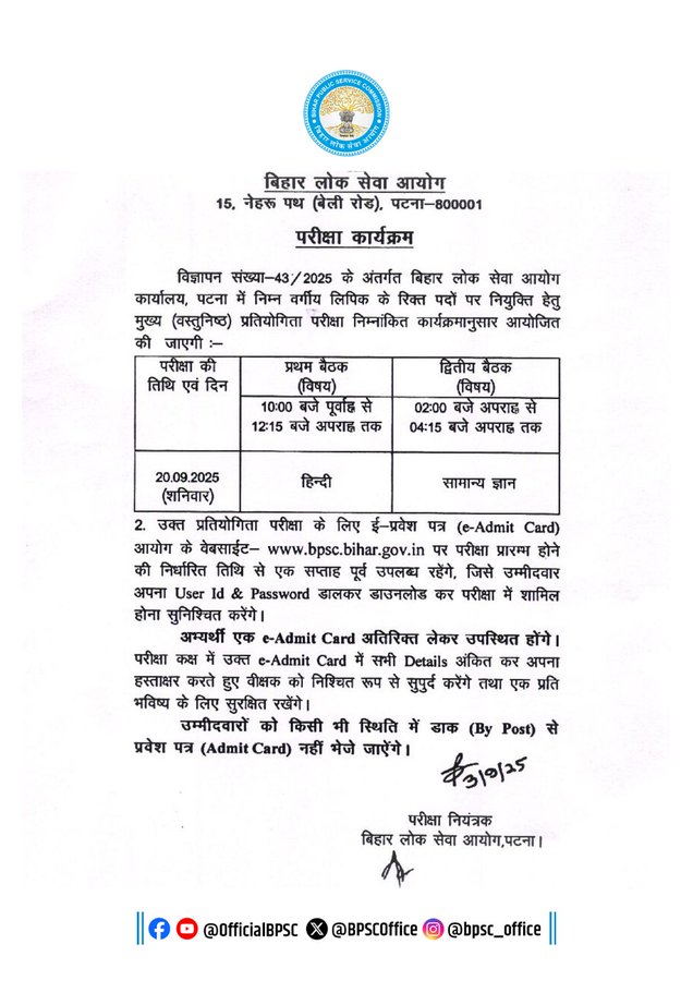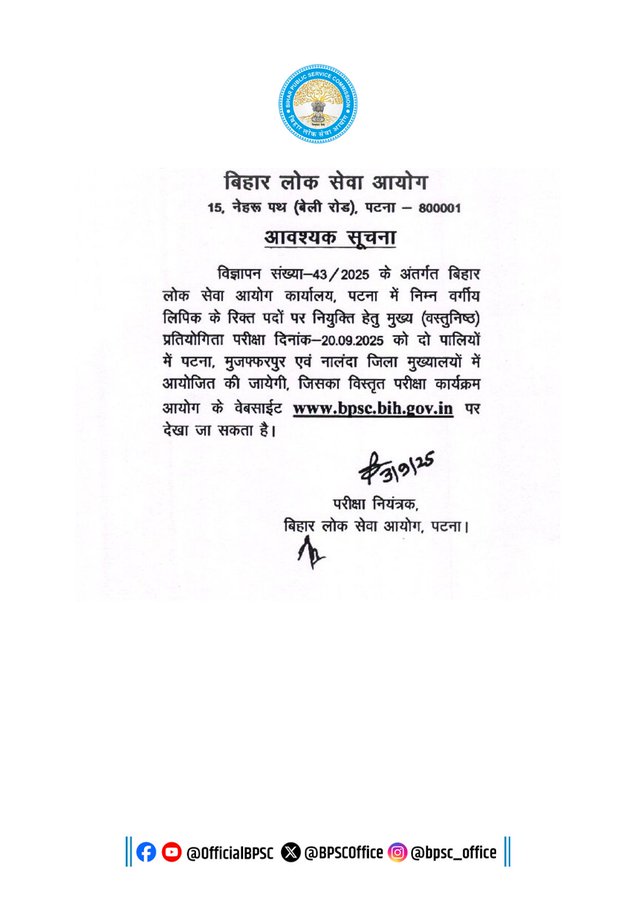 • Candidates are advised to confirm from the Bihar BPSC official website.