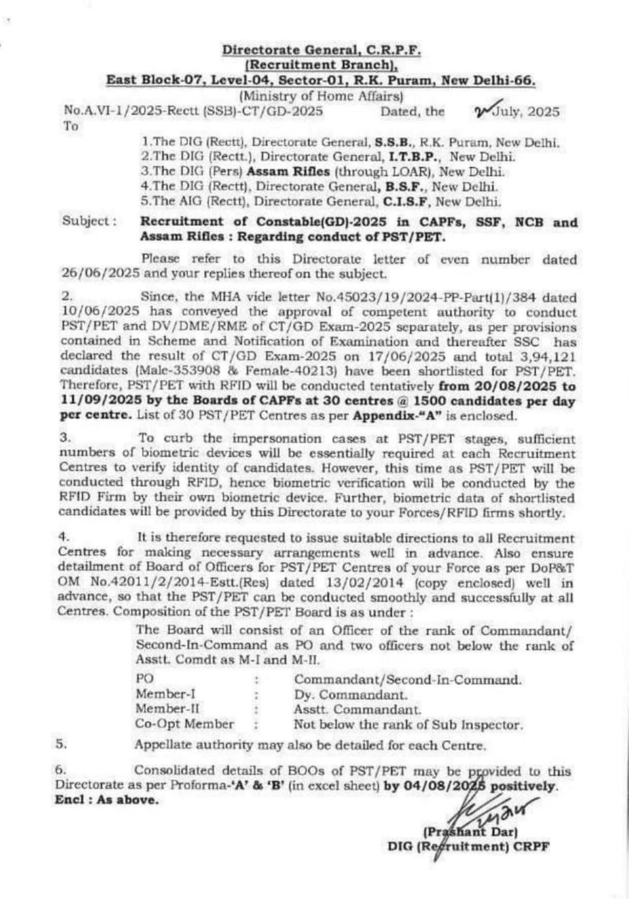 SSC Constable GD 2024 PET/ PST Admit Card 2025 – Out