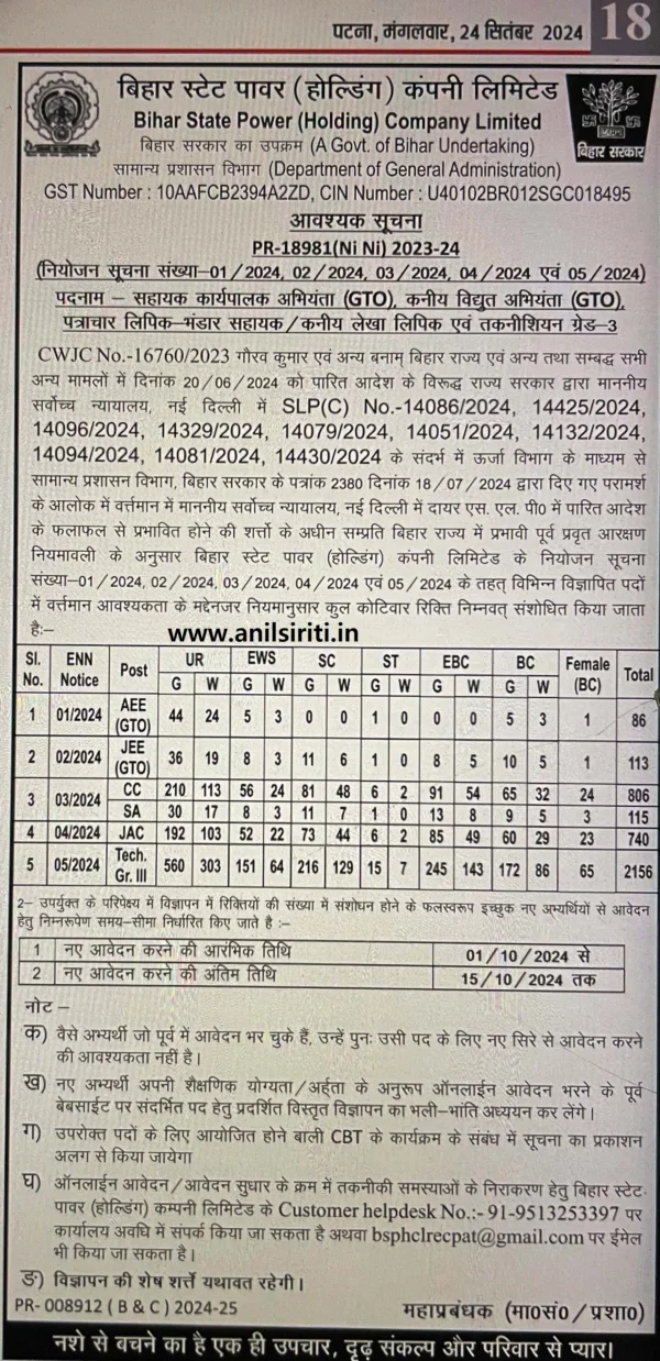 - Candidates are advised to confirm from the Bihar BSPHCL official website.