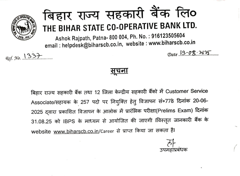 - Candidates are advised to confirm from the Bihar BSCB official website.